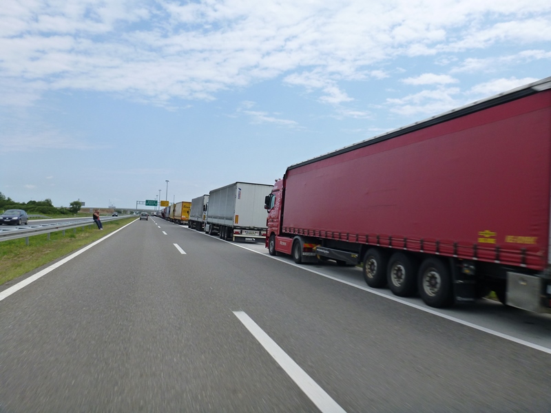 06 queue of trucks waiting to cross the border