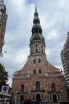 Riga, population 700,000, old town, churches, some nice parks and gardens and many groups of Russian tourists, St. Petersburg is only 570 km distant. Public transport consists of trams and buses, one ride costs 0.50 Lats about a dollar, you buy a card loaded with as many rides as you want from any one of the many Narvesen kiosks around town, the card itself is free.