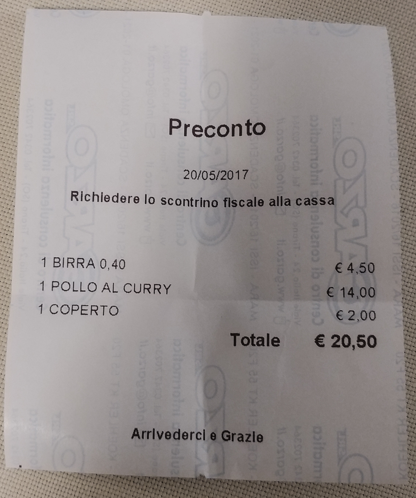 Coperto=Cover/Service Charge=Tip
