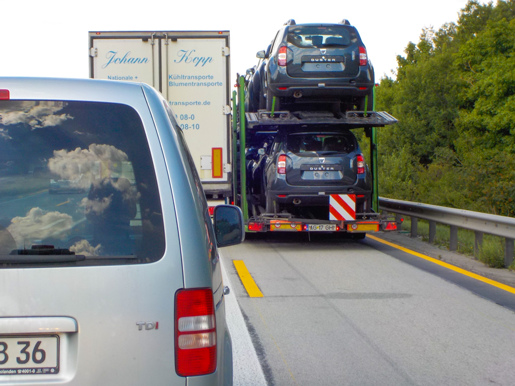 Inching past broken down truck