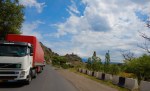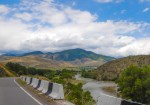From here the road is 2 lanes and follows a river until about 130 km from Tbilisi when it becomes a new 4 lane concrete freeway.