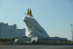 Getting to Ashgabat is not easy because not many airlines fly there. My route took me from Perth to Bangkok (7 hrs) on Thai Airways, 6 hour layover and then a 7 hour flight on Turkmenistan Airlines to Ashgabat. The airline does not have a website and I made the booking through their main Agent Deepika Travels in London, you cannot book through the website in the link, you have to call them and they are about half the price of any other booking website. I had read some funny stories about this airline but it was a very pleasant flight, only about half full, more than enough leg room, wide seats and they served two meals. The Ashgabat Airport looks brand new and everything was immaculate, it was also completely deserted. First stop is the visa counter where I was the only one and handed in my Letter of Invitation, paid US$99 at the counter next door and the visa was pasted into a full page of my passport. Next Immigration and except for 3 passengers myself included (I was the only tourist) the rest of the passengers were in transit so we were processed immediately, my suitcase arrived soon after and I was out of the airport very quickly, quite a painless experience.