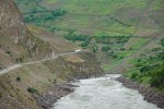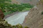 It rained all night and that noise combined with the roaring of the river meant little sleep. Breakfast and left at 0830, rough roads, drizzle, big puddles and muddy road, a few streams running across the road as well hahaha. One check point for passport and visa which is where the copies come in handy, you just give them the copies and carry on instead of waiting while they write everything down. Followed the river Panj all the way to Khorog, trucks from China coming and going chewing up the road and Afghanistan is still across the river. Arrived at Qalot at 1230 for lunch, restaurant and nothing else here, Shorba and bread, black tea and a kebab 30 Somoni, depart at 1310. Sunshine now and colder, altitude 1800m, light drizzle again, arrived in Khorog at 1630, altitude 2,100m, this is a fairly large town. First thing we did was stop at a Recharge machine to deposit some money into my SIM card so I could buy more Data. We had a look at the Homestay, there was one bathroom and toilet on the Ground floor and my room was up a steep flight of steps on the 2nd floor, decided to give that a miss. Checked Booking.com and found Zarya Hotel, good reviews for $30 and we went there and checked in, clean, very good supply of hot water, private bathroom, good bed, owners spoke English, recommended.