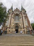 The speed limit is 60 kph through towns, 90 kph on 2 lane roads and 110 kph on 4 lane roads, there are no freeways or toll roads in Ukraine. Vitali riding a new Honda Goldwing which is a 6 cylinder 1800 cc behemoth ignored all limits and I just followed him hahaha. We encountered only one radar check with plenty of warning beforehand and they were too busy writing tickets anyway. Two lane road most of the way in reasonable condition, arrived in Lviv an hour later. This city has trams and cobblestone roads in very bad condition, there is no chance of anyone exceeding 10 kph hahaha, the tram rails are on little hills with valleys in between and the cobblestones are all at different angles, quite an experience changing lanes.